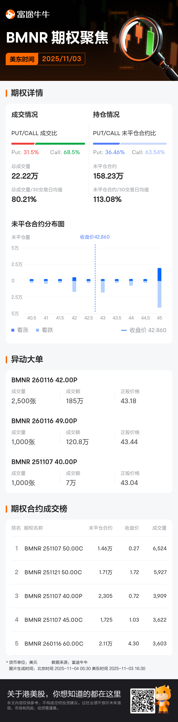 It shows that as of the close of the day, the open interest of $Bitmine Immersion Technologies (BMNR.US)$, indicating options positions have not been closed, totaled about 1.58 million contracts, which was 113.08% of the average of the past 30 trading days.