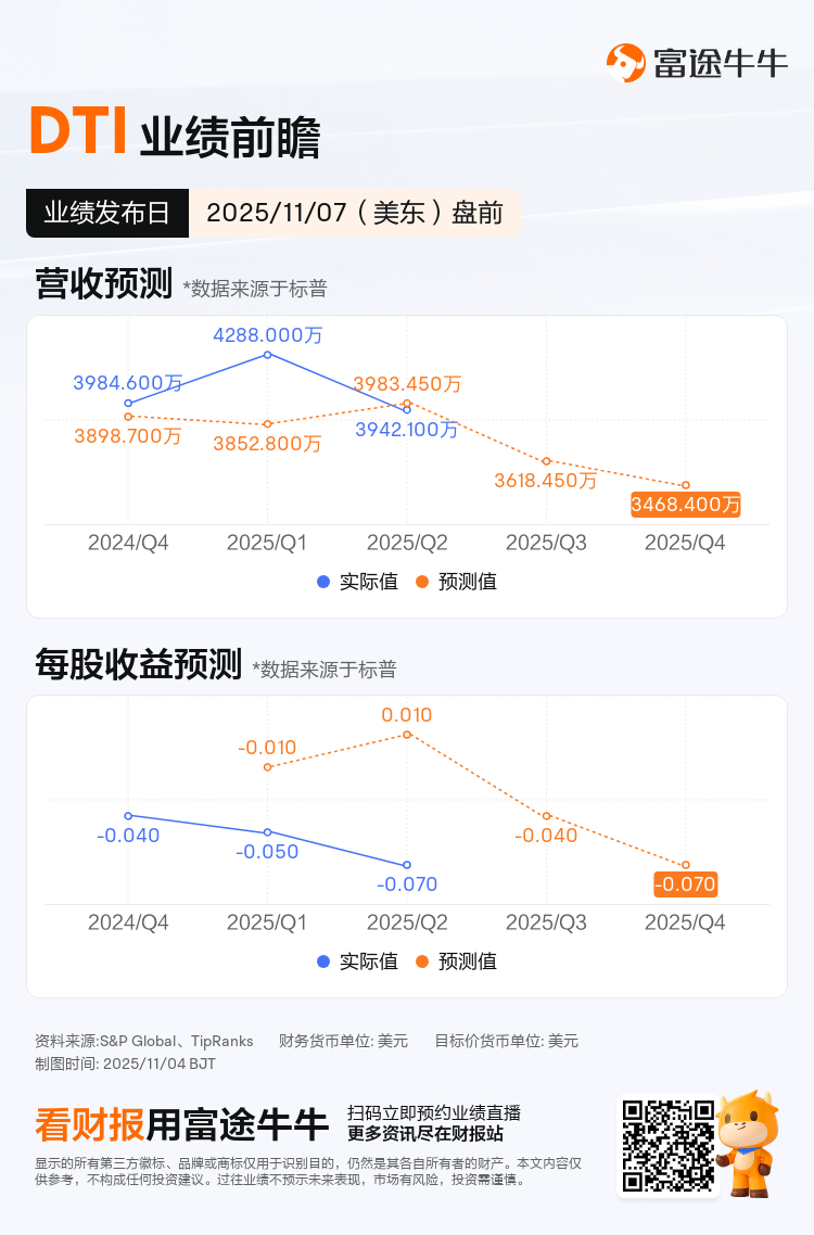 Analysts estimate $Drilling Tools International (DTI.US)$ to post revenue of USD36.18M for 2025Q3, down 9.75% YoY;