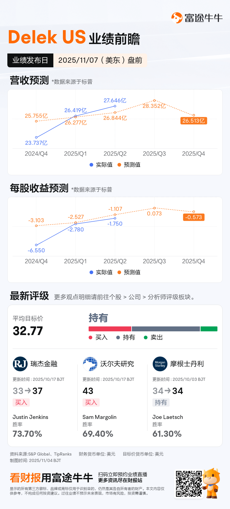 Analysts estimate $Delek US (DK.US)$ to post revenue of USD2.84B for 2025Q3, down 6.81% YoY;
