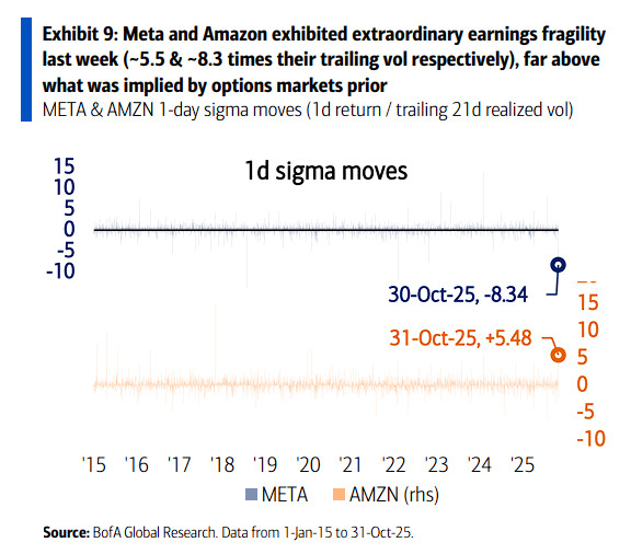 $Meta Platforms (META.US)$ On October 30, the stock price plummeted by 11.3%, with its single-day volatility being approximately 8.3 times its historical realized volatility.