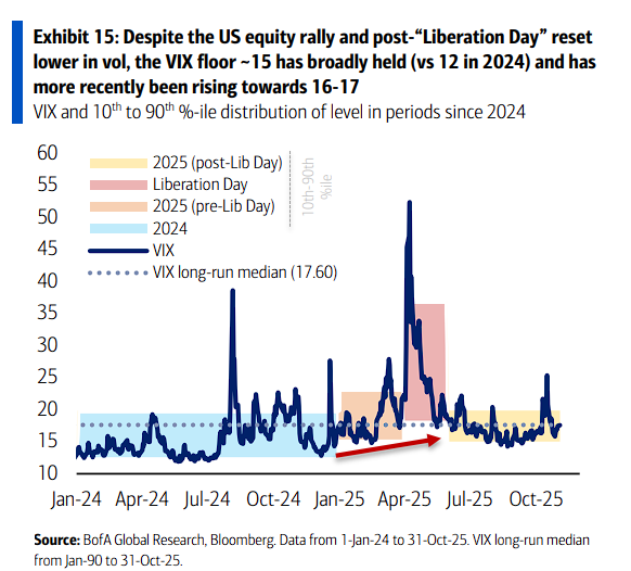 Despite signs of a bubble emerging, Bank of America emphasized that we may still be in the early stages of the bubble. The primary evidence comes from several key volatility indicators: