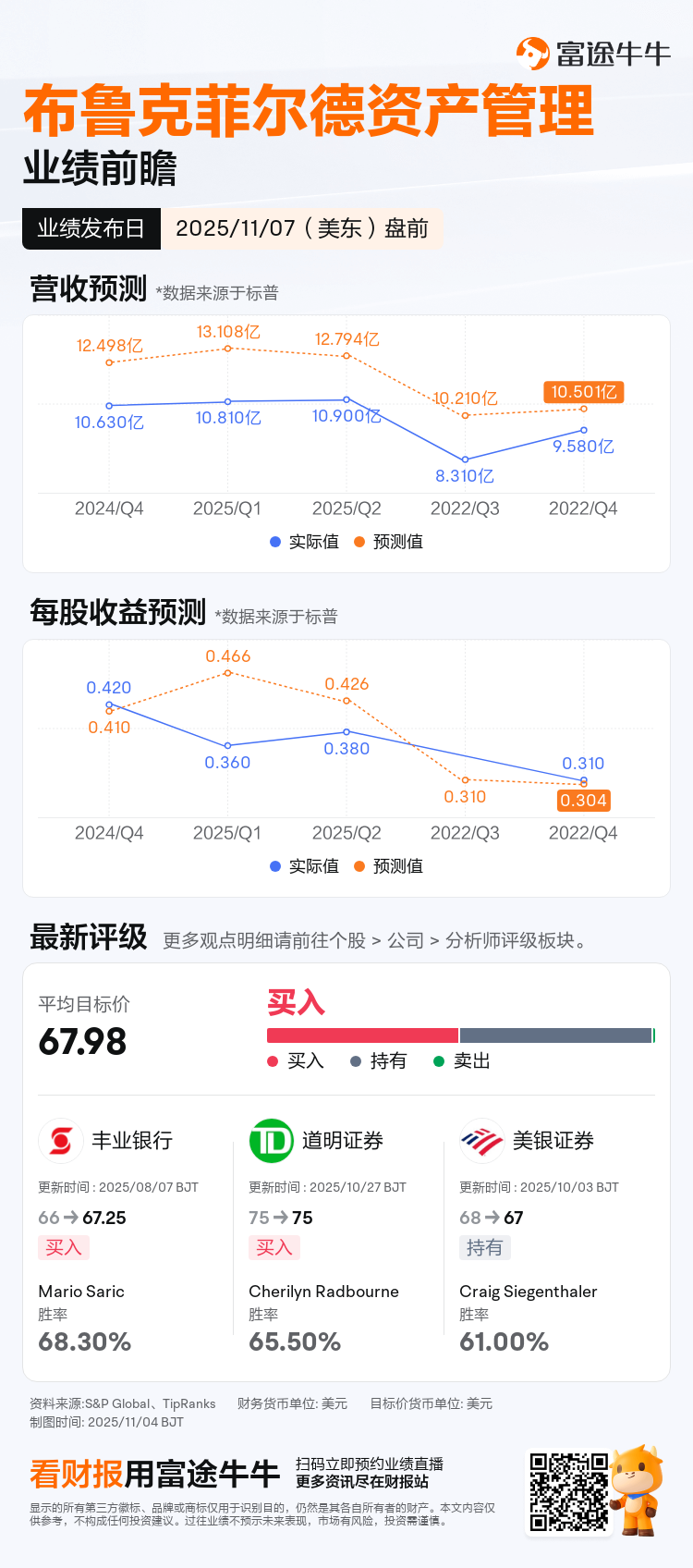 機構預期$布魯克菲爾德資產管理 (BAM.US)$2025Q3預計實現營收13.43億美元,按年增加20.21%;