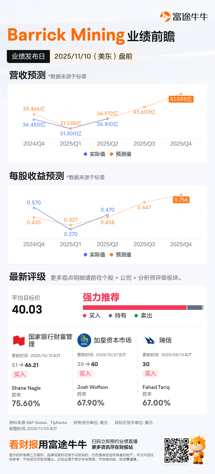 $Barrick Mining (B.US)$將於美東時間11月10日盤前發佈業績,投資者敬請留意。
