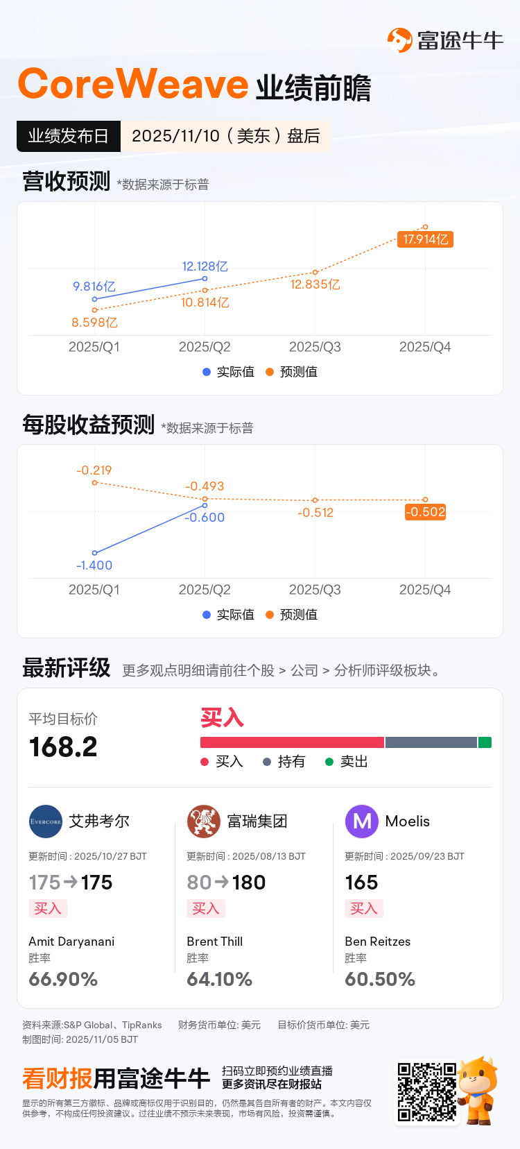 $CoreWeave (CRWV.US)$將於美東時間11月10日盤後發佈業績,投資者敬請留意。