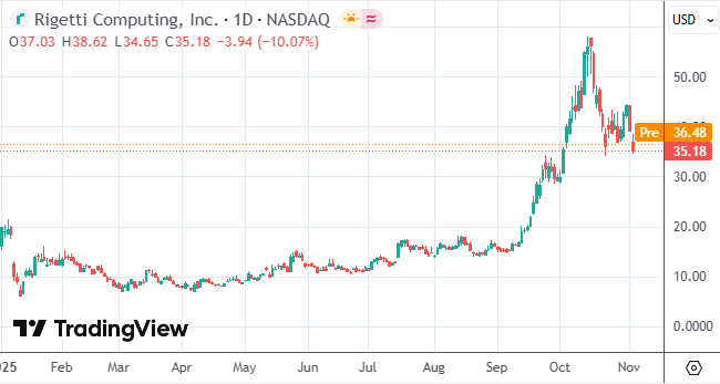 週一時,B. Riley 分析師Craig Ellis將Rigetti的評級下調至「中性」,理由是其「估值過高」,且擔憂美國政府關門可能帶來營收壓力。但Ellis仍將目標價從35美元上調至42美元。